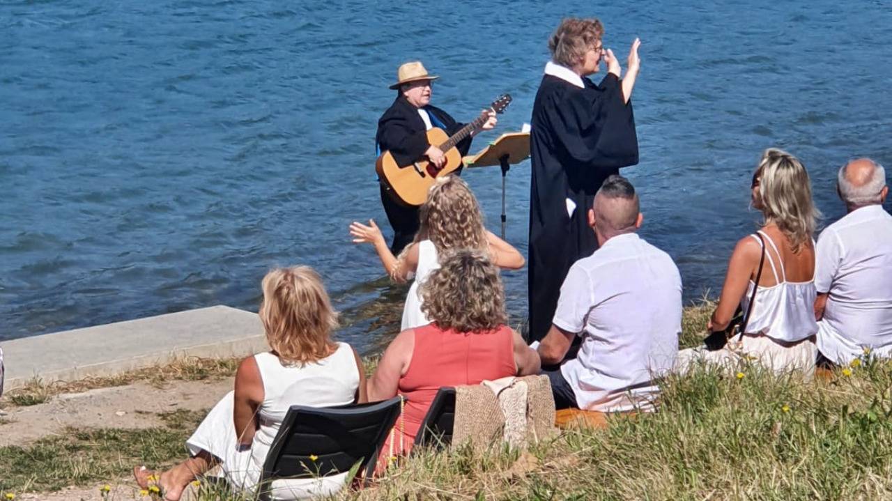 Einige Eltern haben sich aus diesem Grund wieder einen Taufgottesdienst am Badestrand in Brennet gewünscht, am 25. Juni hat er in diesem Jahr stattgefunden. Damit war auch die Segnung für den Kircheneintritt einer bereits getauften Person verbunden.