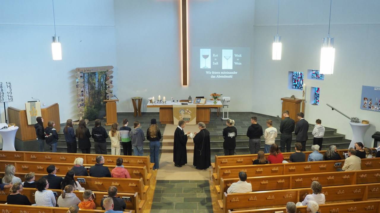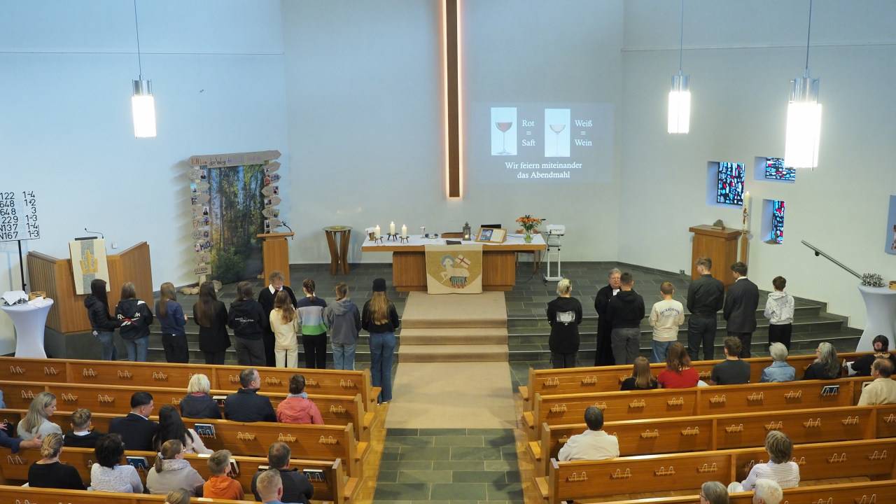 Traditionell gehört zur Konfirmation die erste Teilnahme am Abendmahl. Das ist heute nicht mehr so. Aber eine gemeinsame Abendmahlsfeier mit den Eltern und der Gemeinde würde sehr lange dauern. Deshalb findet diese Feier schon vor der Konfirmation statt.